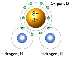 Modelo fictício da molécula de água. Em https://commons.wikimedia.org/w/index.php?curid=79468575